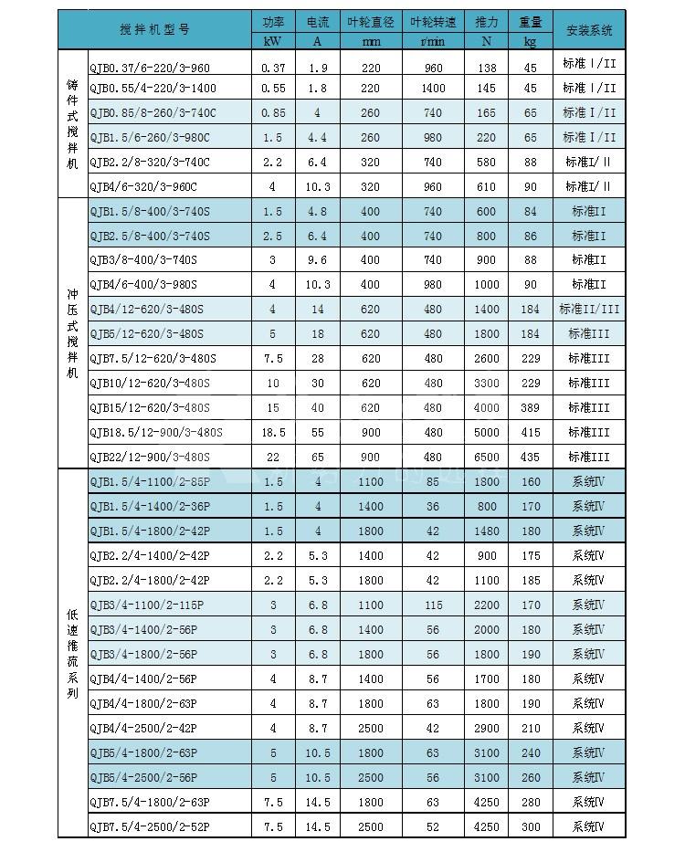 QJB型潛水攪拌機可分爲混合攪拌和低速推流兩大系列。